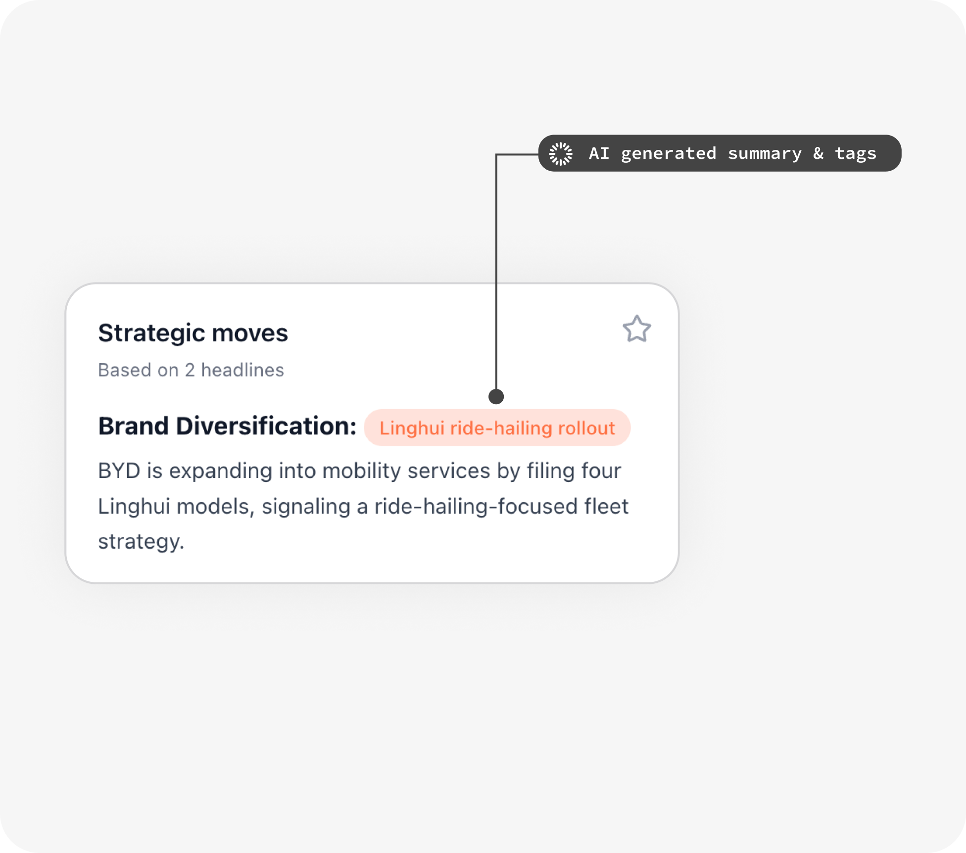 AI-generated summaries turn competitor news into structured intelligence—risks and opportunities made visible.