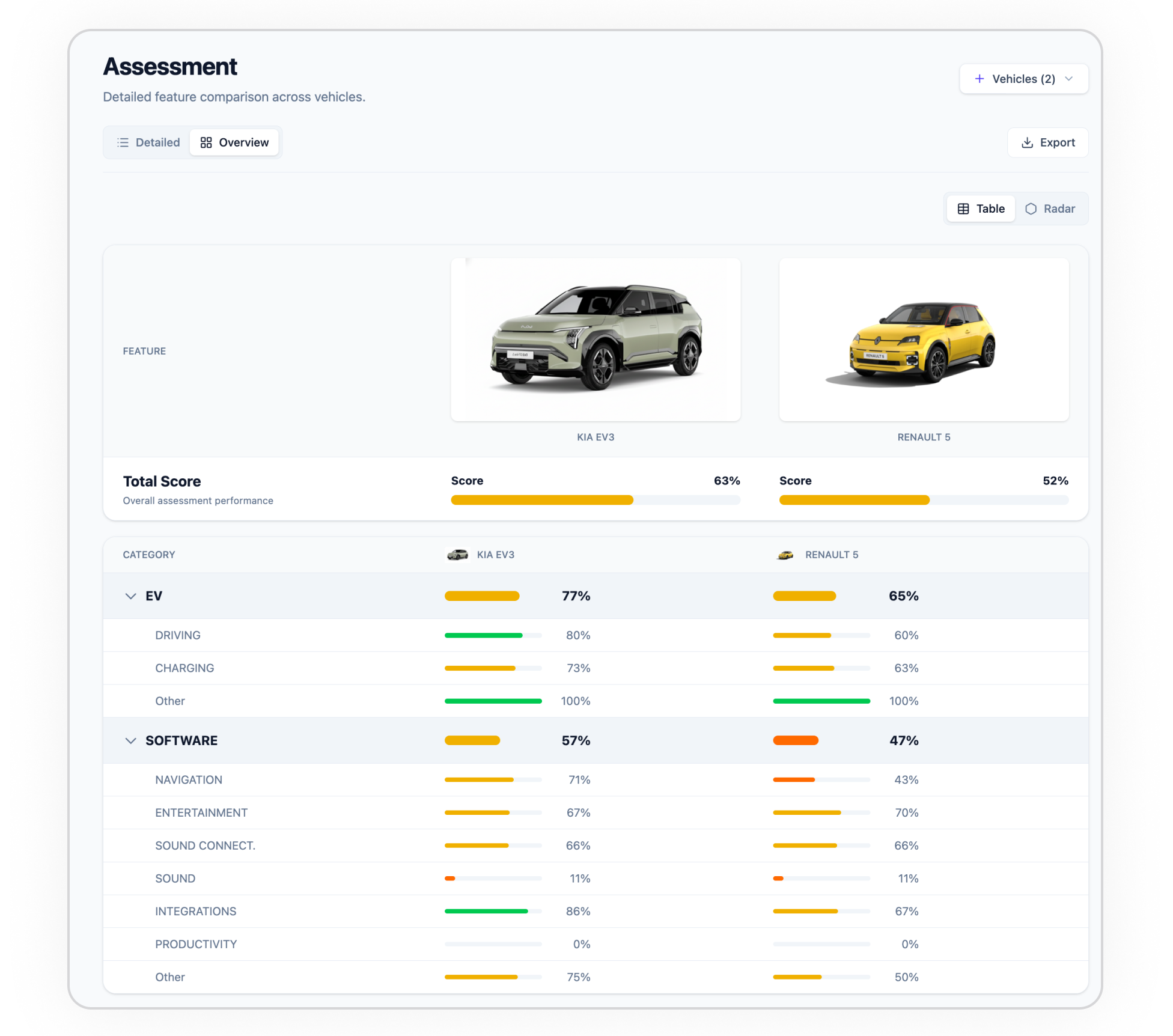 Specify YOUR features of interest and benchmark competitors side-by-side, scoring across every product category.